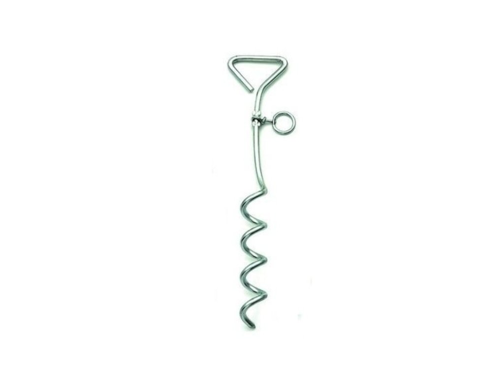 Kolík se snadno zavrtá do země a udrží psa na daném místě.