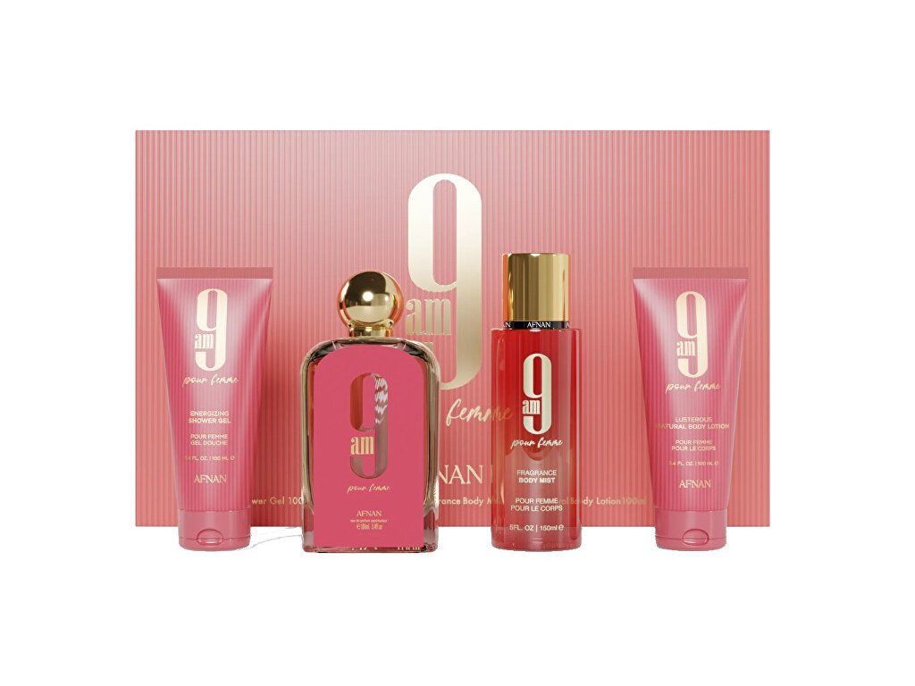 Afnan 9AM Pour Femme - EDP 100 ml + sprchový gel 100 ml + tělový závoj 150 ml + tělové mléko 100 ml
