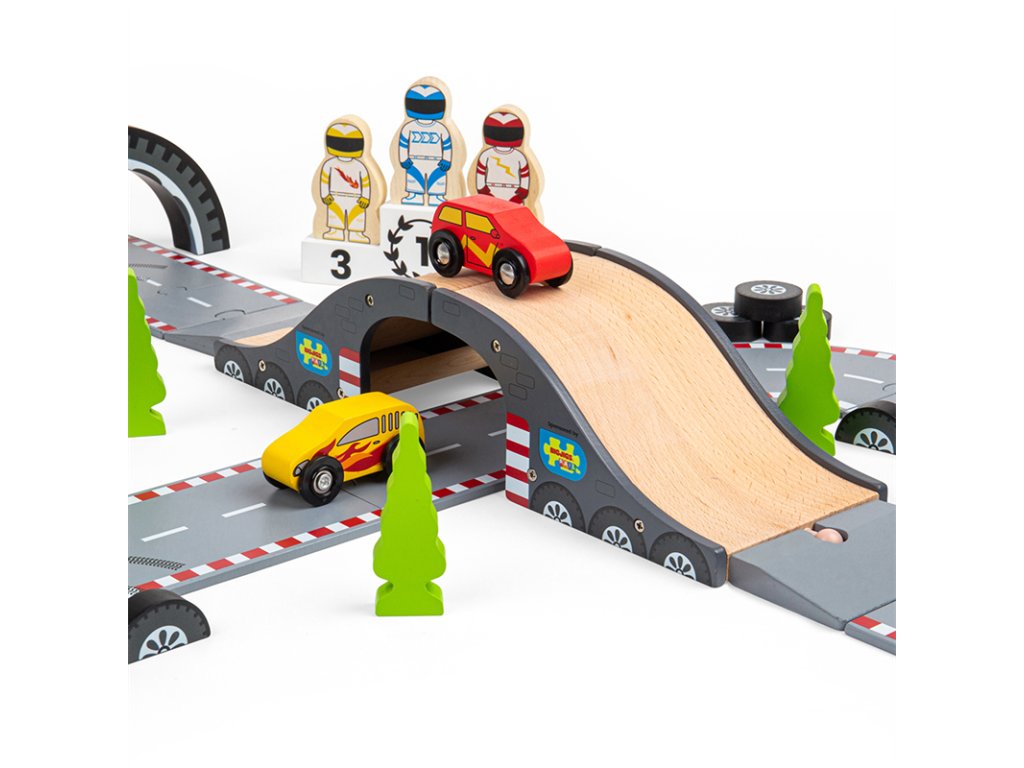 Bigjigs Rail Dřevěná autodráha závodní den