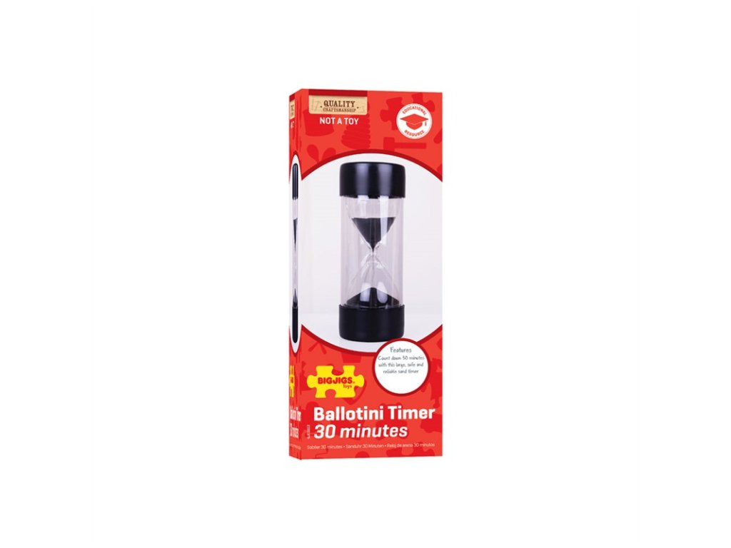 Nejedná se o přesné určení času na sekundy, může dojít k odchylce... Bigjigs Toys přesýpací hodiny jsou ideální pomůckou pro pochopení plynutí času efektivní vizualizací. Nezničitelný design dělá z tohoto výrobku vynikající pomůcku pro všechny věkové kategorie. Přesýpací hodiny jsou ideální pro použití doma nebo ve škole jako určení doby jakékoliv činnosti např. dobu učení, úklidu apod. Vnitřní nádobka na písek je vyrobena ze skla, vnější obal je z pevného ochranného plastu. Odpovídá současným evropským bezpečnostním normám. Hlavní vlastnosti: odměřuje 30 minutpochopení plynutí času efektivní vizualizacípraktické využití u mnoha činnostíDoplňkové parametry