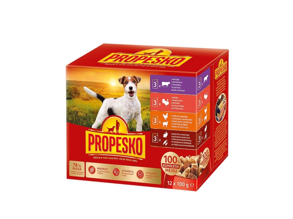 PROPESKO Dog kuřecí/jehněčí, krůta, králík s mrkví, kapsa 100 g (12 pack)