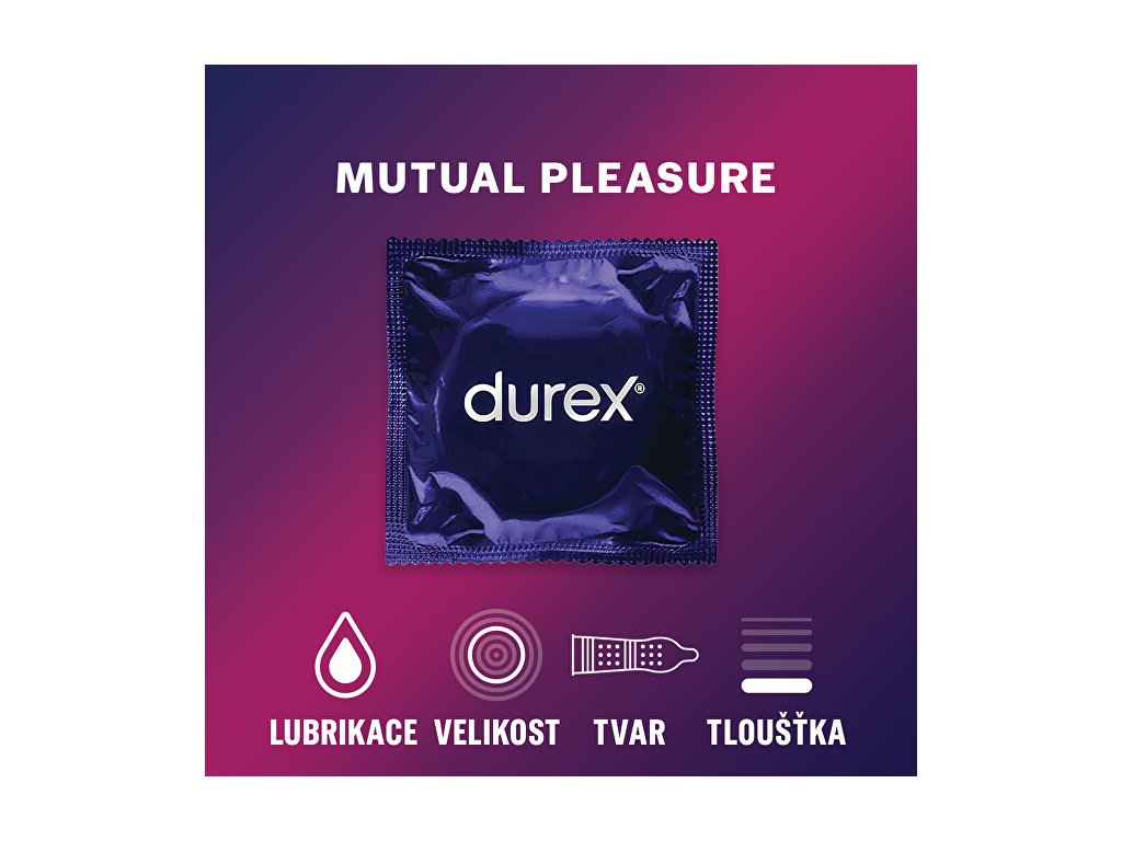 Kondomy Mutual Pleasure jsou vroubkované s výstupky pro větší potěšení a stimulaci, aby žena dosáhla orgasmu rychleji. Kondomy jsou na vnitřní straně lubrikované lubrikantem Performa™, který vám pomůže vydržet déle, abyste dosáhli společného vyvrcholení. TVAR: Vroubkované kondomy se stimulujícími výstupky, tvar Easy-on pro snadnější nasazení zakončený rezervoáremVELIKOST: Standardní (Nominální šířka 56 mm)LUBRIKACE: Extra lubrikované, silikonový lubrikant Performa™ obsahuje 5% benzokain, lokální anestetikum, které pomáhá mužům oddálit vyvrcholeníTLOUŠŤKA: StandardníMATERIÁL: Průhledné kondomy z přírodního kaučukového latexu