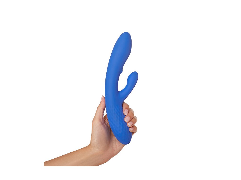 Duální vibrační stimulátor má 3 motory, 10 vibračních a pulzačních režimů, které vás potěší hlubokými vaginálními vibracemi i stimulátorem klitorisu. Dalším překvapením je pulzující masážní knoflík pro ještě větší intenzitu prožitku. Má ergonomický tvar a hedvábně jemný povrch. Zažijte intenzivní potěšení a vyberte si tu nejlepší vibrační stimulaci, která vás přivede na vrchol. Při plném nabití vydrží až 2,5 hodiny hrátek. Celková délka je 23 cm. USB nabíjení.