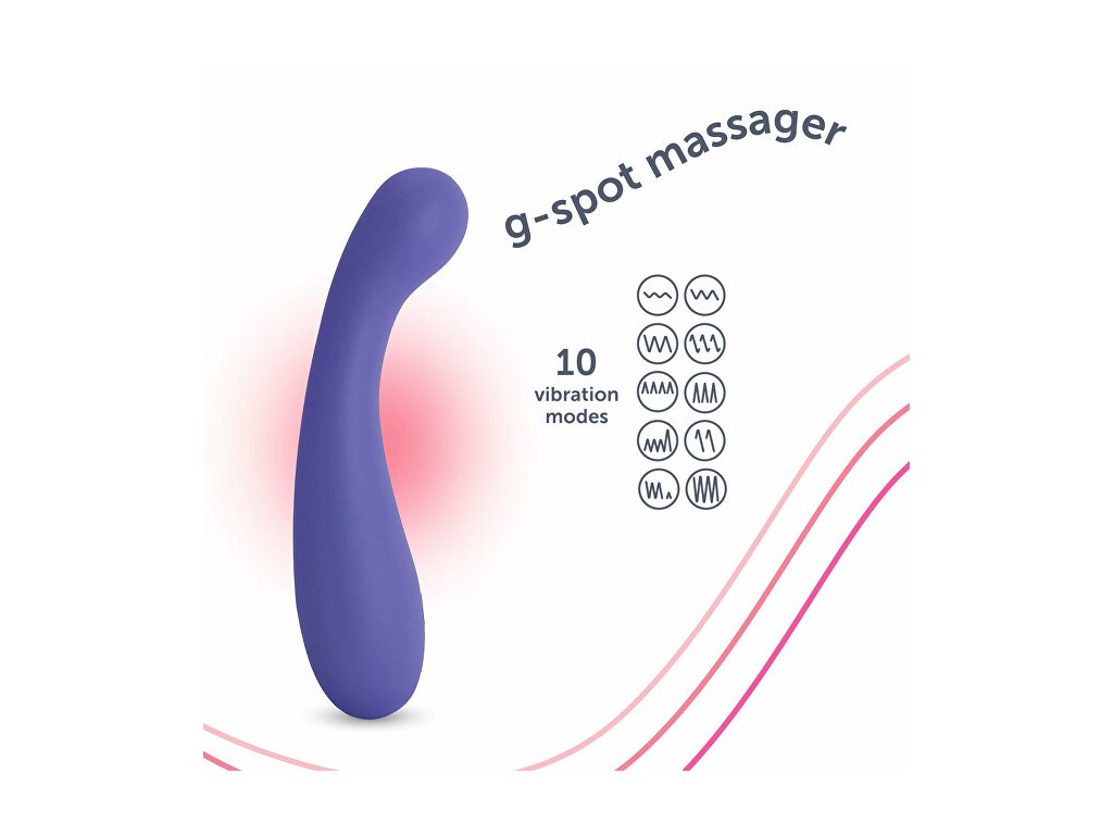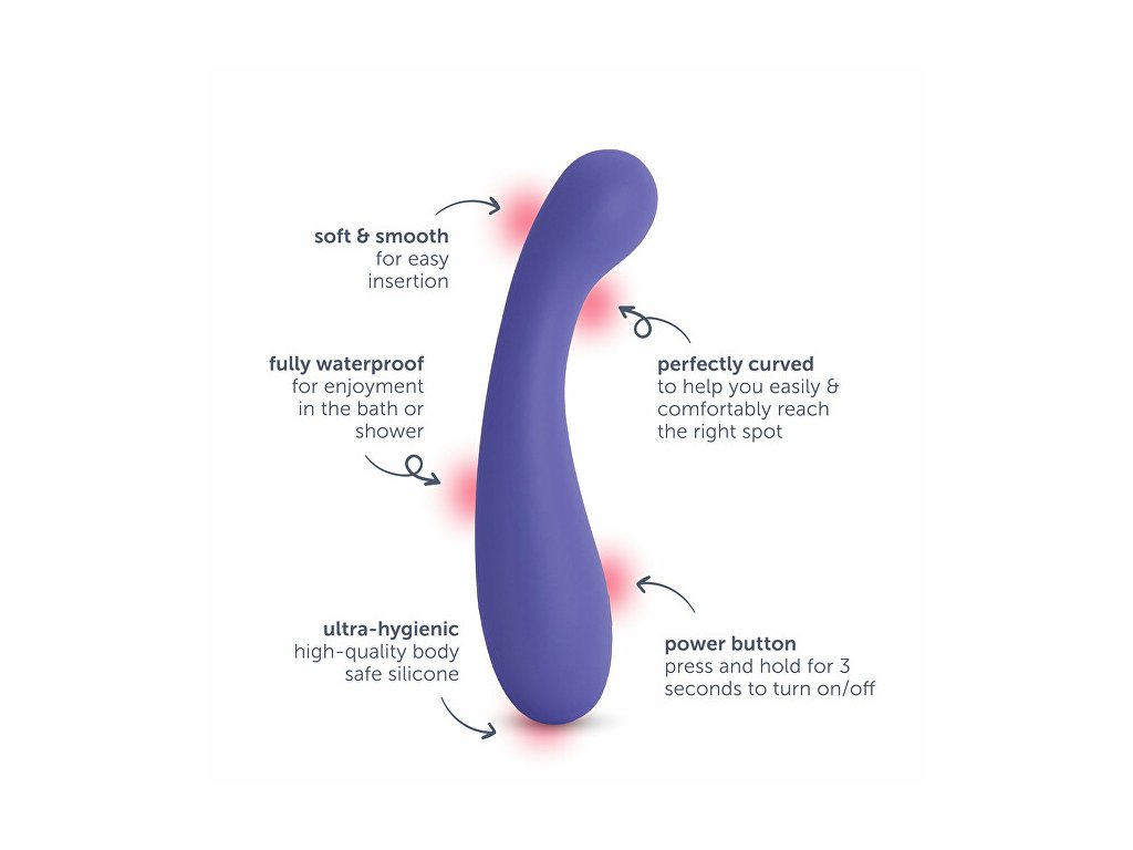 Elegantní vibrátor speciálně navržený pro precizní stimulaci bodu G díky zakřivenému tvaru a větší zaoblené špičce. Měkký a hladký povrch umožňuje snadné zavedení a komfortní používání, ať už během sólového objevování nebo partnerských her. Díky 10 vibračním režimům si můžete přizpůsobit stimulaci přesně podle své nálady a tempa, zatímco kompaktní a ergonomický design umožní pohodlné držení a snadné ovládání. Plně vodotěsný design je ideální i pro hrátky ve sprše či vaně.