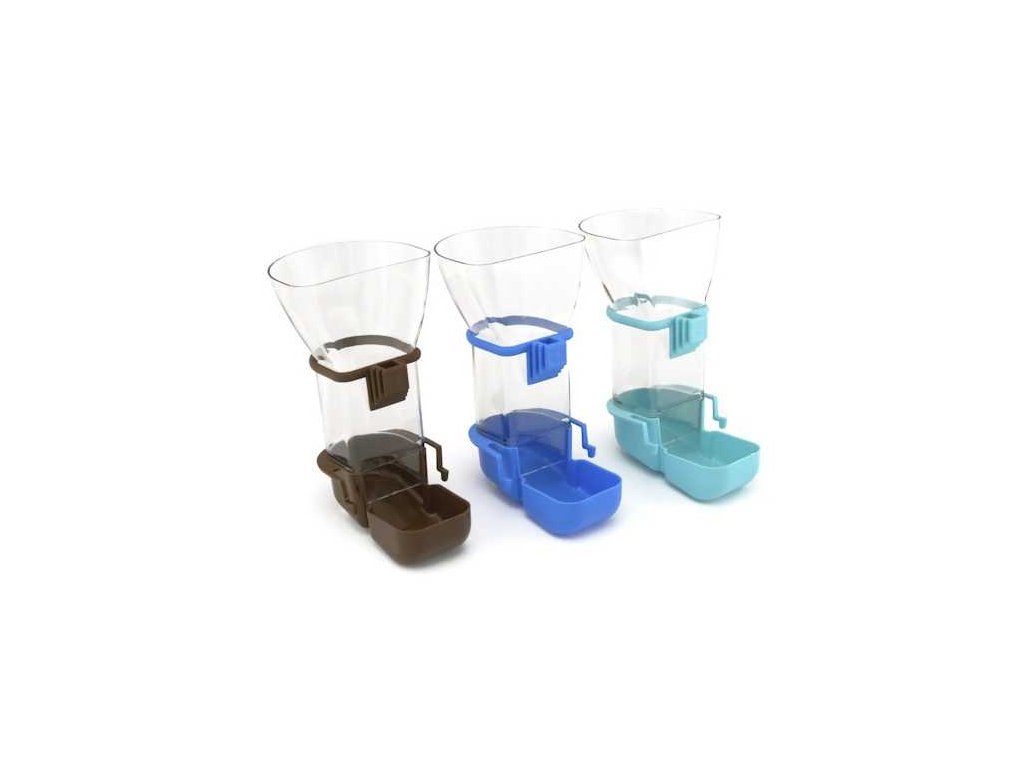 Plastové krmítko do klece pro ptáky - velkéOtevřené plastové krmítko určené k upevnění na dráty klece umožňuje kontinuální doplňování krmiva bez nutnosti otvírání klece.