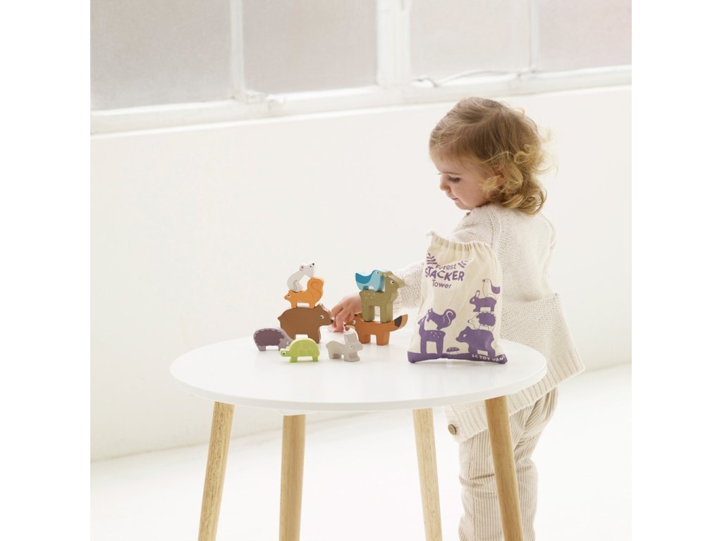 Skládací věž lesních zvířátek je ideální hračkou pro nejmenší děti. Figurky zvířátek budou skládat na sebe, cílem je postavit co nejvyšší věž, ta však může kdykoliv spadnout… Dílky zvířátek jsou velké tak akorát pro dětské ruce. V balení najdete lišku, zajíce, ježka, medvěda, myš, želvu, veverku, kolouška a ptáčka. Předejte dětem vědomosti o přírodě, zároveň si s nimi procvičte jemnou motoriku. Hračka je zabalena v bavlněném pytlíku, je tedy perfektní také na cesty. Hračka pomůže s rozvojem zručnosti a koordinace ruka-oko. Vyrobeno z udržitelného dřeva, malováno netoxickými barvami na bázi vody. Hračky s účelemVšechny hračky firmy Le Toy Van jsou vyrobeny s cílem – aby dlouho vydržely. Designovány s láskou zkušenými řemeslníky za použití etických praktik a udržitelných materiálů, které jsou laskavější k naší planetě. Hlavní vlastnosti: vyrobeno eticky z udržitelného FSC dřevatestováno dle nejpřísnějších standardůmalováno netoxickými barvami na bázi vodyinspiruje k představivé hřerozvíjí kognitivní dovednosti Ocenění hračky:Good Toy Guide Recommended Petilou kolekce: Kolekce pro nemluvňata a batolata od Le Toy Van obsahuje hlavně hmatové hračky, které mají nejmenším posloužit také jako učební prostředky. Kolekce je inspirována přírodou kolem nás a je navržena tak, aby rozvíjela smysly dětí pomocí rozdílných zvuků, textur, tvarů a hmotností. Děti tak od malička zapojí všechny své smysly. V kolekci najdete například skládačky, vkládačky, chodítka, … Značka a certifikát FSC® (Forest Stewardship Council) zaručuje, že dřevo, ze kterého byl produkt vyroben, nebylo vytěženo nelegálně a pochází z lesů obhospodařovaných šetrným či přírodě blízkým způsobem, ve kterém jsou dodržovány přísné environmentální a sociální požadavky. Značka FSC® na výrobku znamená, že svým nákupem pomáháte chránit lesy a podporujete šetrné, odpovědné či přírodě blízké hospodaření, díky kterému jsou naše lesy stabilnější, zdravější, mají přirozenou druhovou skladbu a lépe odolávají negativním následkům klimatických změn.Doplňkové parametry