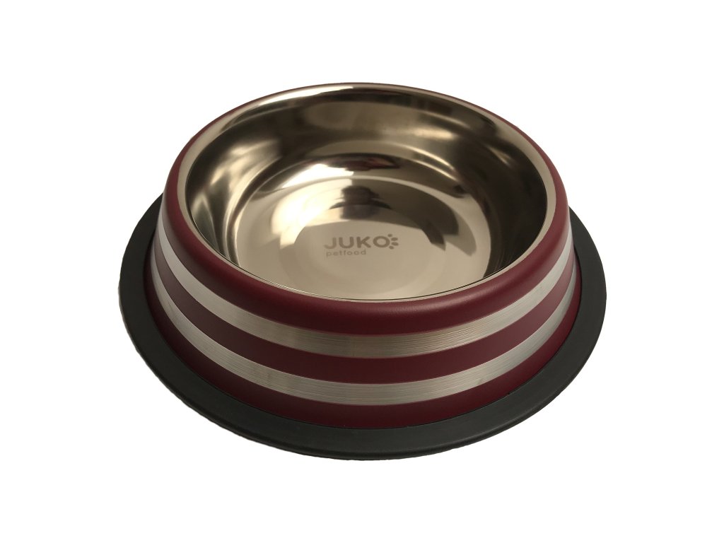 Nerezová miska, opatřená silikonovým kroužkem, je více stabilní a neklouže po podlaze.