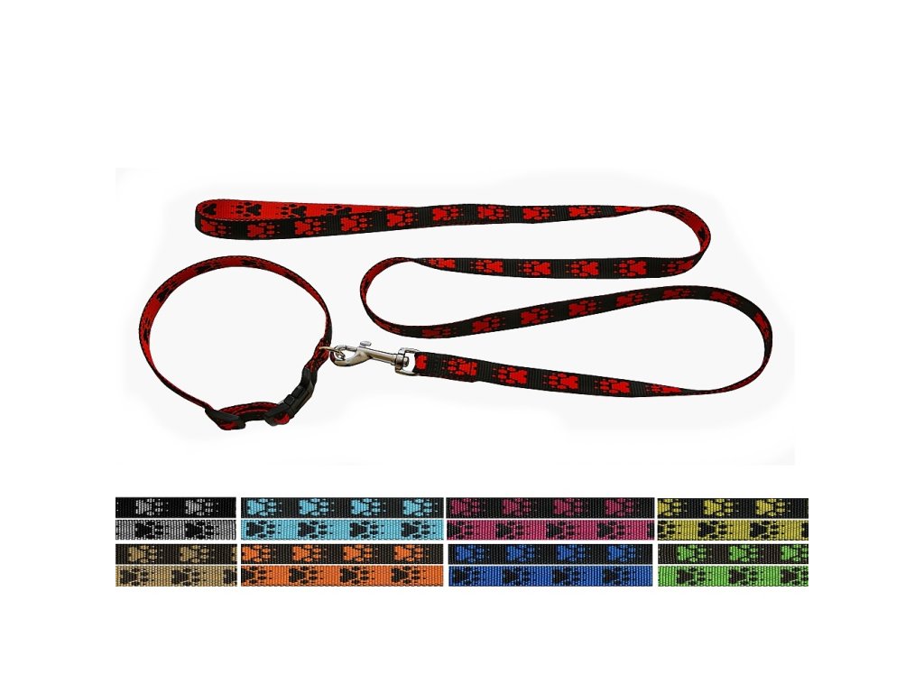 Obojek a vodítko z polypropylenového popruhu o šířce 16mm s atraktivním designem.