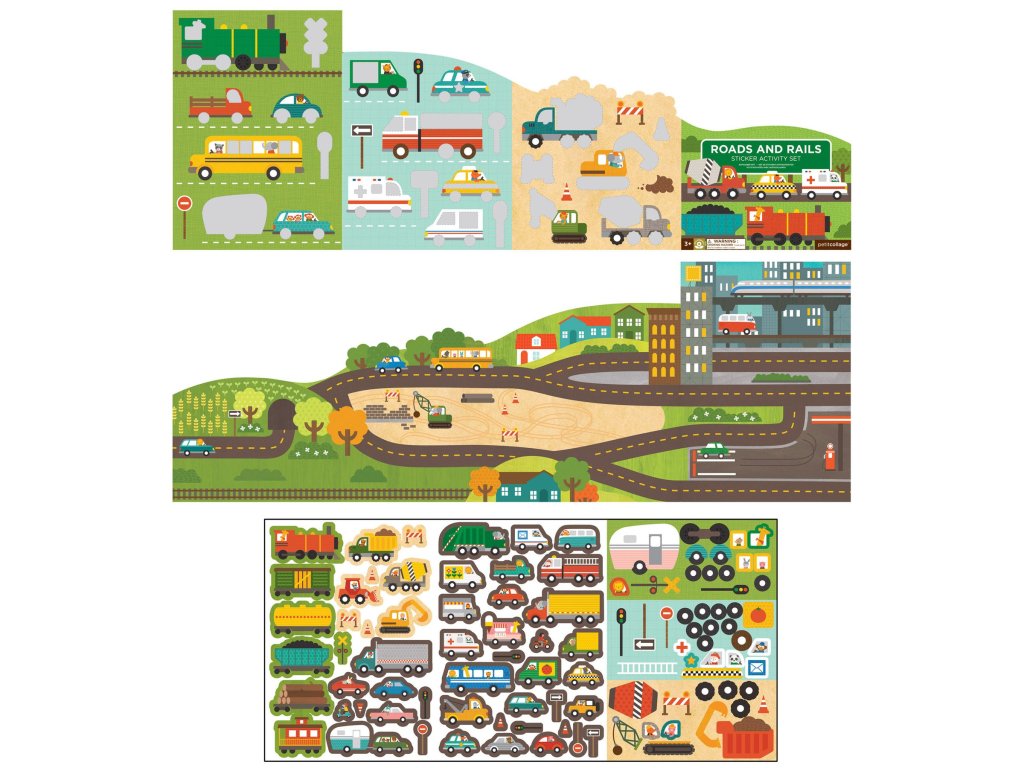 Petit Collage Znovupoužitelné samolepky se scénou Auta a stroje