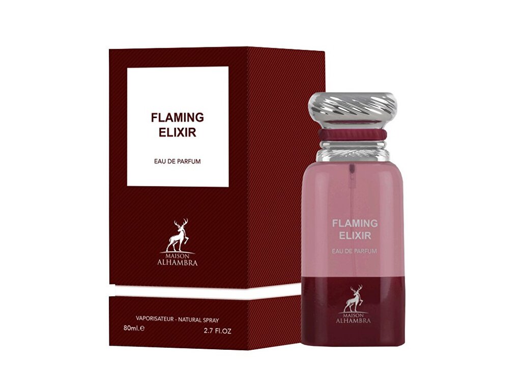 Flaming Elixir od značky Alhambra je kořeněná, ovocná parfémovaná voda pro muže i ženy. Elektrizující vonný elixír vás oslní přítomností sladké, zralé třešně, která je doplněná o pikantní zázvor a elegantní tóny jasmínu Sambac. Spodní tóny tvoří smyslné pižmo, hřejivé akordy ambrettolide a bobulky růžového pepře. Flaming Elixir je šumivá, exotická vůně, která vás obklopí a zažehne ve vás plamen neuhasitelné touhy.