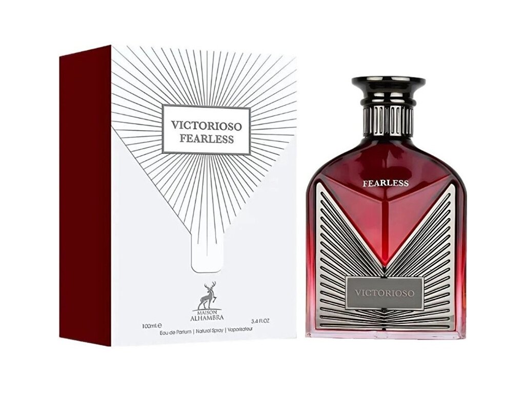 Victorioso Fearless je odvážná a charismatická pánská vůně, která ztělesňuje sílu, sebevědomí a mužnou eleganci. Úvod patří šťavnatému jablku doplněnému o pikantní hřebíček a aromatický kardamom – trio, které okamžitě upoutá pozornost svou energií. V srdci se rozvíjí hřejivá skořice, svěží pelargonie a uvolňující levandule, jež dodávají kompozici sofistikovaný rozměr. Základ tvoří smyslná vanilka, jantar a cedrové dřevo, které vůni uzemňují a zajišťují dlouhotrvající dojem. Victoriosso Fearless je vůně pro moderního muže, který se nebojí vystoupit z davu a ukázat svou vnitřní sílu.