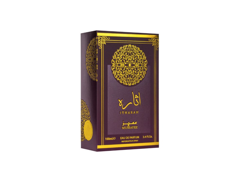 Itharah Mumayez je unisex květinově-dřevitá parfémovaná voda, která oslavuje eleganci, jemnost a sebevědomí. V samotném úvodu vás okouzlí svěží bergamot, který v kombinaci s jemně sladkou broskví vytváří moderní a lehce ovocný start – svěží, ale zároveň sametově hebký. V srdci se rozvíjí elegantní jasmín a smyslná tuberóza, dvě květinové ingredience, které v sobě spojují smyslnost, hloubku i lehce krémový akord. Tato kombinace dodává vůni květinový charakter s luxusním nádechem. Základ vůně tvoří hřejivé santalové dřevo a jemné pižmo, které kompozici propůjčují měkký, zaoblený a dlouhotrvající závěr. Itharah Mumayez je jako elegantní dotek na kůži – něžná, ale výrazná, decentní, ale nezapomenutelná. Perfektní volba pro denní nošení i večerní příležitosti.