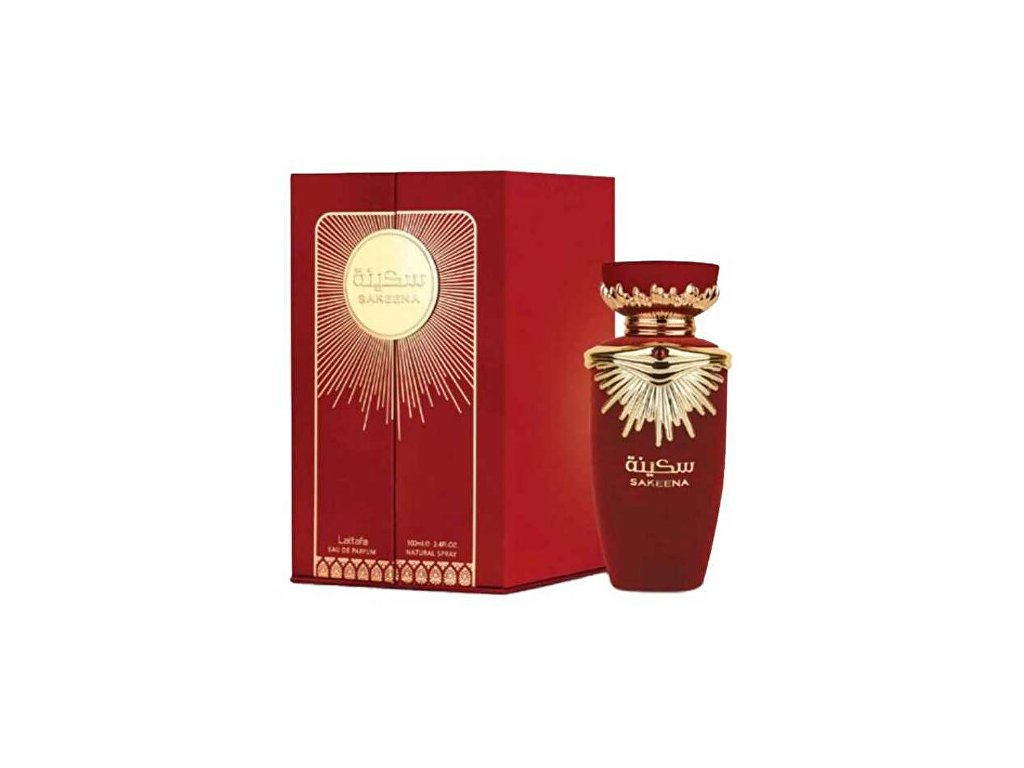Sakeena od značky Lattafa je orientální květinově-ovocná parfémová voda pro ženy. Nejprve vás přivítají lehké ozonové vzdušné tóny, jejichž čistotu zvýrazňují sladké štavnaté tóny mandarinky a exotické mučenky. Srdce rozkvétá vůní růže, pomerančového květu a smyslné maliny. Omamné tóny kávy se mísí se sladkou pralinkou, lahodnou vanilkou a pižmem. Svůdná vůně pro ženy, které se nebojí být samy sebou. Vůně byla uvedena na trh v roce 2022.