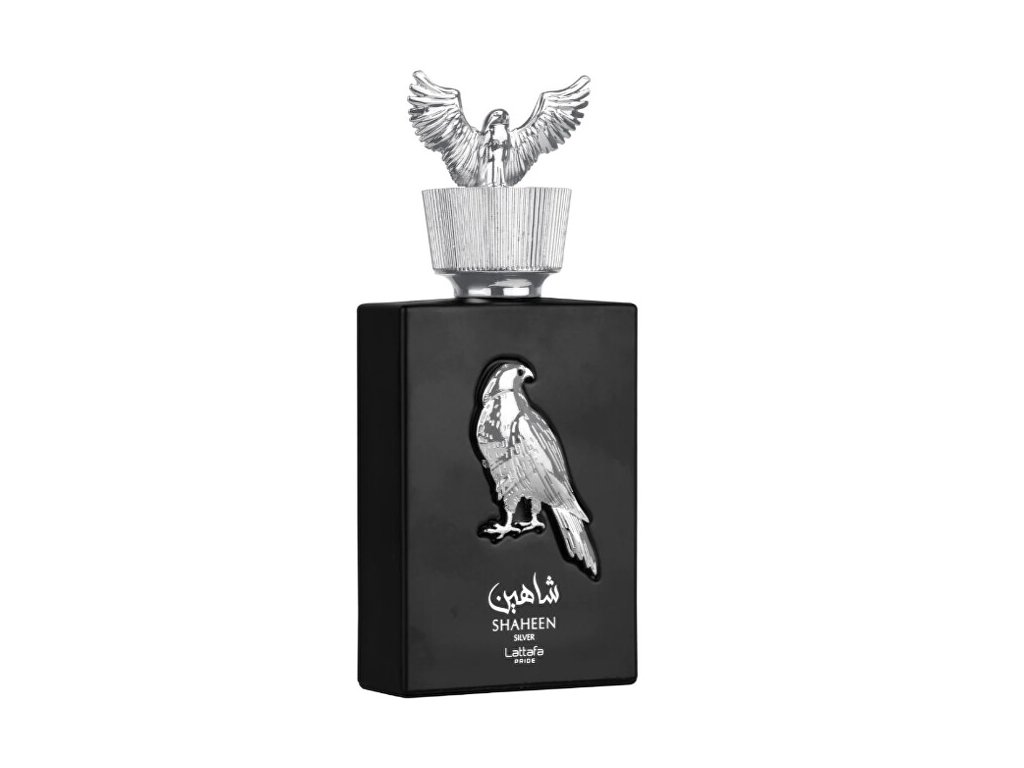 Pánská parfémová voda Lattafa Shaheen Silver je svěží ódou na orientální vůně. Parfémová voda se otevírá sladkokyselou stopou zralého černého rybízu, který doplňuje nahořklý, svěží bergamot. Sametové tóny okvětních lístků růží se linou vedle sladkých tónů pačuli, které doplňuje kompozici o dřevité akordy. Zelené tóny dubového mechu prodchne nadýchané pižmo a medová nota ambry. Odhalte tajemství a hloubku Shaheen Silver a zahalte se do přitažlivých tónů této vůně.Vůně byla uvedena na trh v roce 2022.