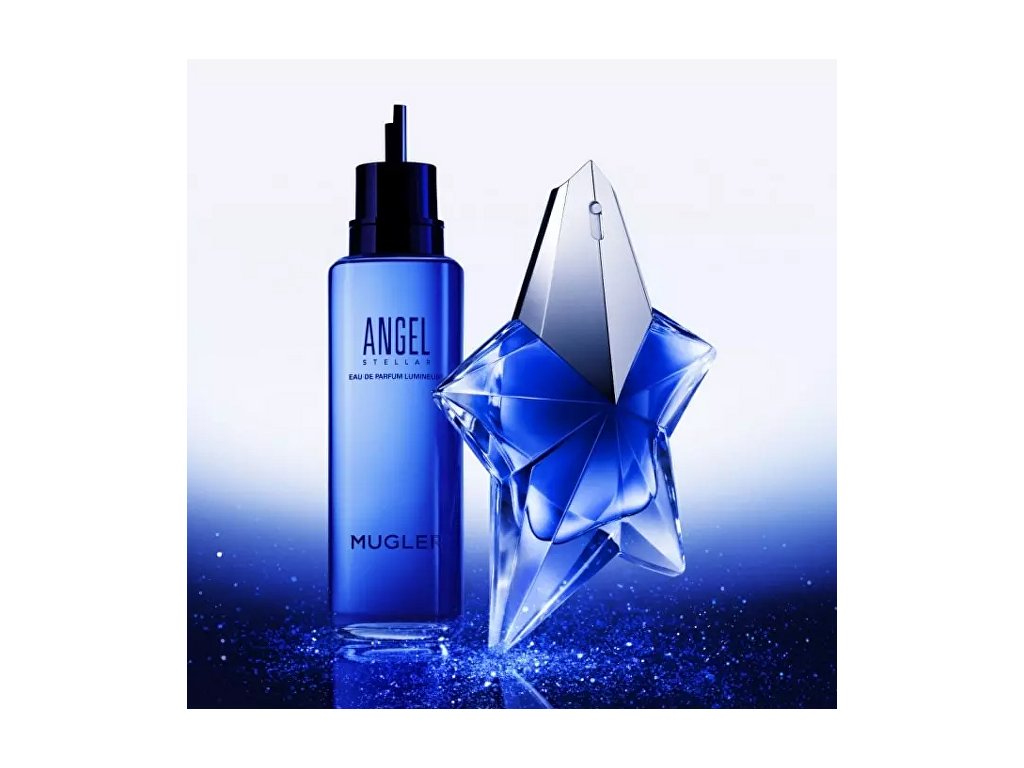 Vesmír plný tajemství, krásy a nekonečných možností se stal inspirací pro novou vůni z dílny značky Mugler – Angel Stellar Lumineuse. Tato parfémovaná voda navazuje na ikonickou dámskou vůni Angel, ale představuje ji v novém, zářivějším světle. Je jemná, a přesto silná. Éterická, ale nezapomenutelná. Září jako hvězda na temné obloze – vede vás cestou sebevědomí, elegance a autentické ženské síly. V úvodu zazáří svěží a jiskřivý bergamot, který působí jako ranní paprsek světla – povznášející a čistý. Okamžitě vás vtáhne do této nebesky laděné kompozice a nastaví tón zážitku, který je zároveň osvěžující i okouzlující. Srdce vůně skrývá nečekané překvapení – pistácii, jejíž jemně oříškový, gurmánský tón dodává vůni krémovou texturu a sofistikovaný nádech. Je to prvek, který zosobňuje ženskost v celé její komplexnosti – jemnou, smyslnou, hravou i silnou zároveň. Základní tóny patří elegantnímu pačuli, které je pro vůni Angel typické. Tentokrát však není těžké ani příliš výrazné – působí spíš jako měkký, světlem prozářený závoj, který se pomalu rozplývá a zanechává za sebou hřejivou, přitažlivou stopu. Angel Stellar Lumineuse není jen vůně. Je to poselství – oslava vnitřního světla každé ženy. Je stvořena pro ženy, které chtějí být skutečně vidět. Pro ženy, jejichž záře vychází zevnitř – klidná, silná a nezaměnitelná. Pomocí samostatně prodejné náplně lze flakon vaší oblíbené vůně znovu doplnit. Vůně byla uvedena na trh v roce 2025.
