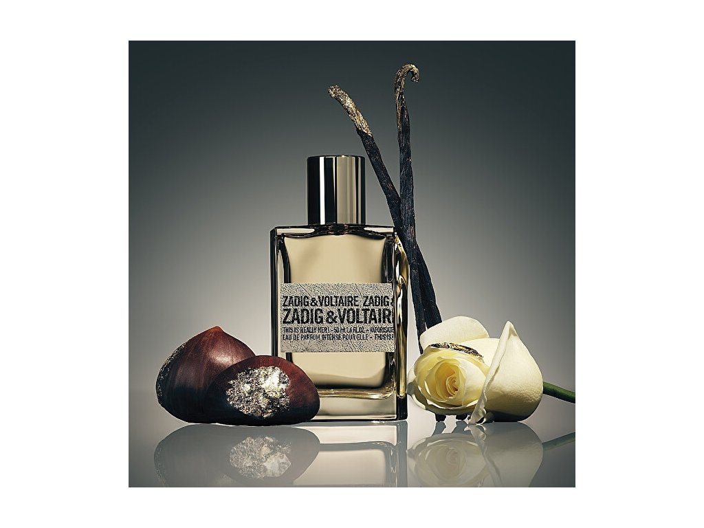 This Is Really Her! Intense od značky Zadig & Voltaire je sladká parfémovaná voda pro ženy. Převratná vonná esence vás zve na nové dobrodružství. Návyková intenzita i provokativní charakter vůně zcela rozvrací konvence a boří všechna pravidla. Živé tóny růžového pepře se snoubí s harmonickými akordy bazalky. V srdci se gurmánský akord kaštanů snoubí se smyslným, květinovým aroma růže, zatímco v závěru se mísí zlatavé medové tóny, vanilka a pačuli. Podmanivá vůně se skrývá flakonu s kovovým vzhledem, který dokonale ladí s pánskou vůní This Is Really Him! Intense. Vůně byla uvedena na trh v roce 2024 a její tvůrkyní je Sidonie Lancesseur.
