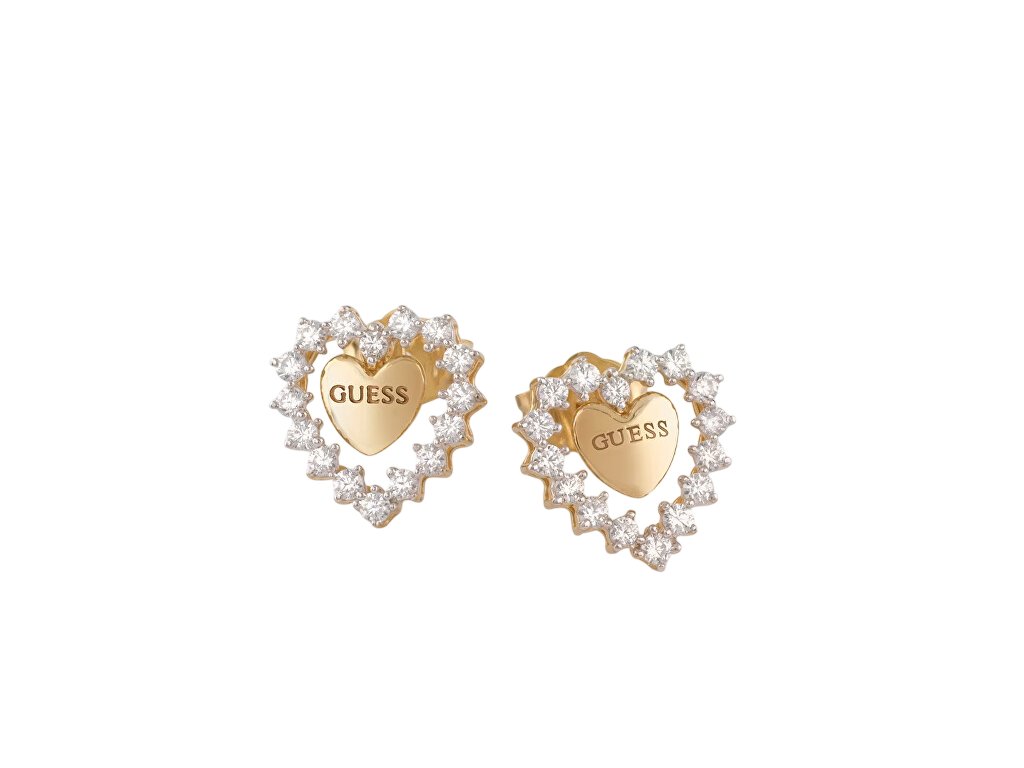 Guess Pozlacené náušnice Srdce se zirkony Jardin JSBE04455JWYGT/U