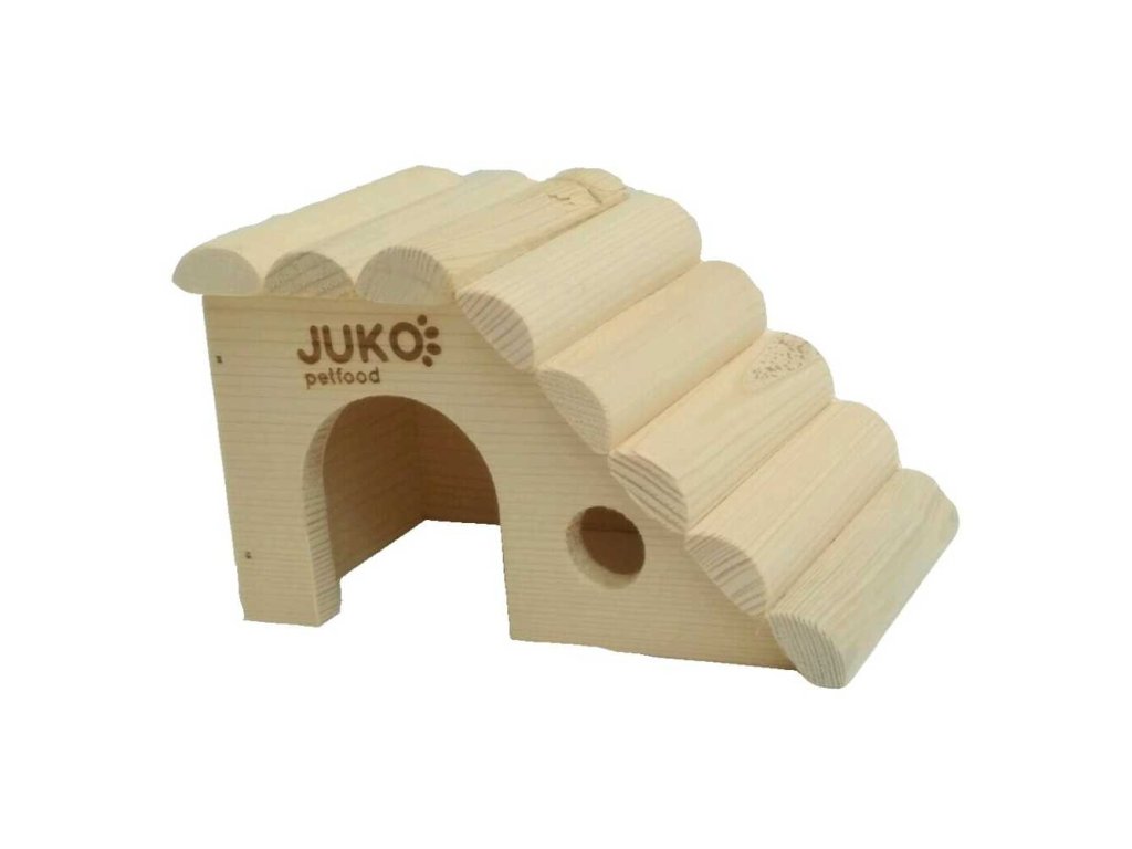 Domek Šikmý Bok - křečekDomek s šikmým bokem, po kterém se zvířátko snadno dostane na plochou střechu. Využívat může tedy i střechu.