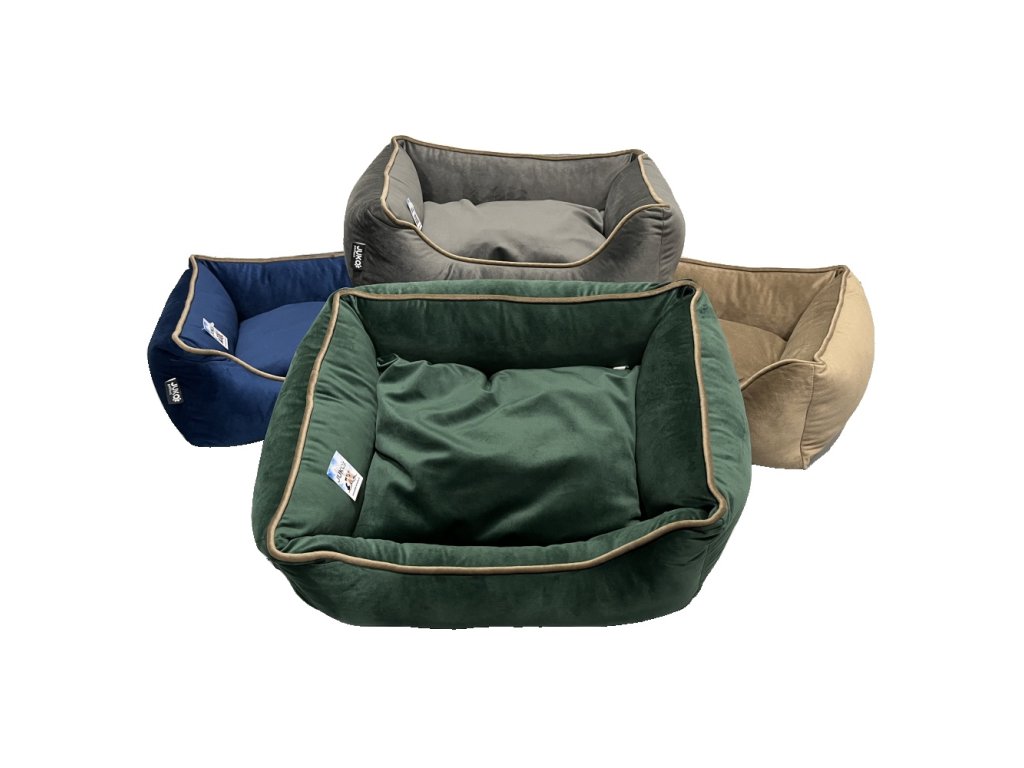 Luxusní sametový pelíšek pro psy s polstrovaným okrajem.