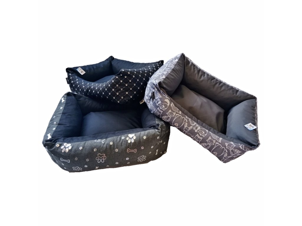 Látkový pelíšek pro psy s vyvýšeným polstrovaným okrajem.