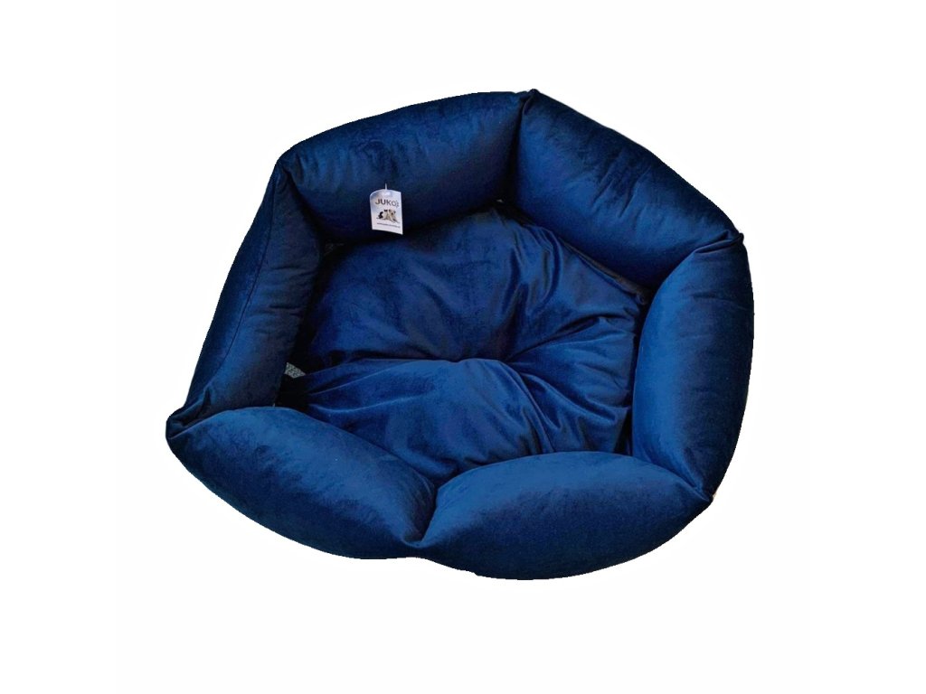 Luxusní sametový pelíšek ve tvaru korunky pro psy s polstrovaným okrajem.