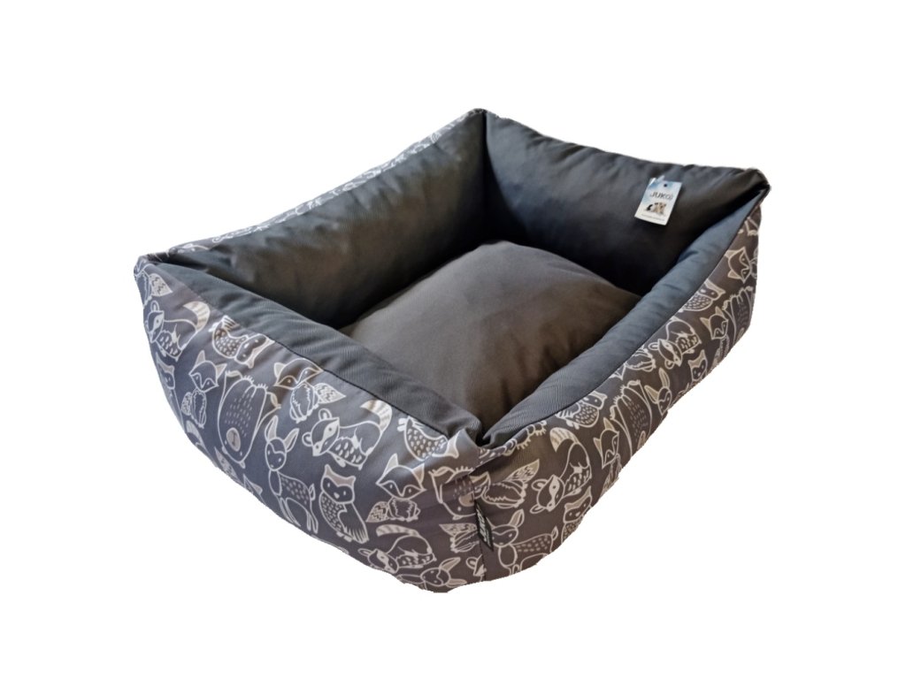 Látkový pelíšek pro psy s vyvýšeným polstrovaným okrajem.