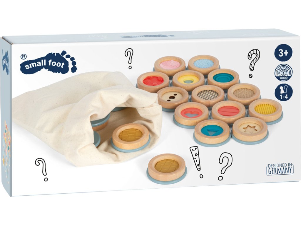 Dotykové pexeso "Sensory" je hra, která oslovuje smysly a podporuje rozvoj dětských dovedností. S touto hmatovou hrou pexeso z produktové řady "Sensory" je cílem dotýkat se různých povrchů a najít odpovídající dvojice. Hra má 28 herních dílků se 14 různými povrchy, kterých se lze dotýkat a třídit. Sedm párů s textilní výplní a sedm párů s různými tvary, které mají různé struktury, tvary a barvy. Hru lze hrát samostatně nebo ve více hráčích. Hra je vhodná zejména pro děti a osoby se zrakovým postižením. Ergonomicky tvarované dřevěné herní prvky díky své velikosti a vyčnívajícímu víku boxu snadno uchopí děti i starší lidé.Po dokončení hry se všechny herní prvky dají uložit do bavlněného pytlíku. Tato smyslová hra nejen podporuje rozvoj hmatu a paměti, ale také slibuje spoustu rozmanité herní zábavy díky různým variantám hry. Lze ji hrát také jako hru vizuální paměti, protože různé povrchy mají také různý vzhled. Jedním ze způsobů, jak upravit úroveň obtížnosti v závislosti na věku a schopnostech dětí, je, zda může herní prvek zůstat převrácený nebo musí být znovu otočen zpět. Je to všestranná společenská hra orientovaná na paměť, která trénuje hmat a zároveň je velice zábavná. Hlavní vlastnosti: vhodná hra děti a osoby se zrakovým postiženímpodporuje rozvoj hmatu a pamětirozmanité texturyvizuální podnětybavlněný pytlík pro uloženíDoplňkové parametry