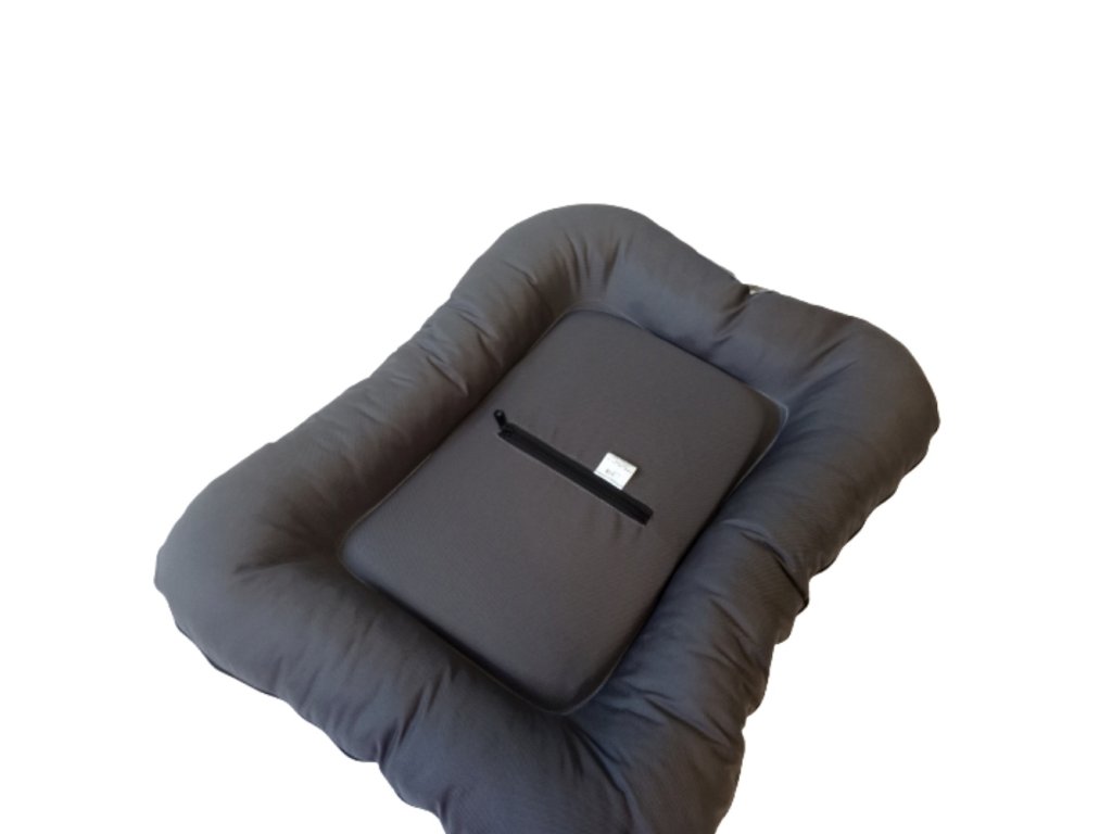 Vyrobený z voděodolné a skvrnám odolné tkaniny Codura oxfort, která se vyznačuje vysokou odolností proti oděru, poškrábání, roztržení a potřísnění, pelíšky jsou vyplněny pružnou, broušenou polyuretanovou pěnou, která se přesně přizpůsobí tvaru psa.