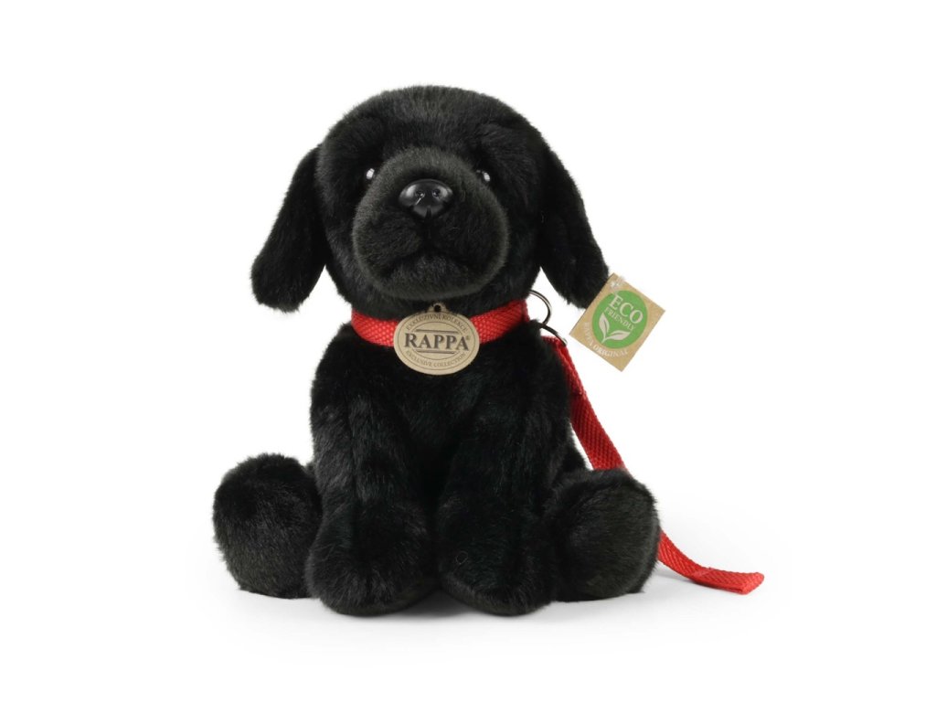 Rappa Plyšový pes labrador černý s vodítkem 28 cm ECO-FRIENDLY