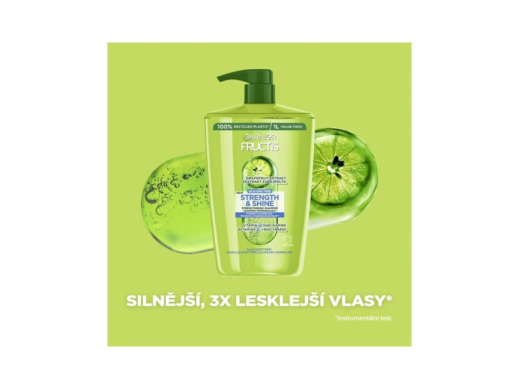 Šampon obohacený o vitamin B6 posiluje vlasové vlákno a dodává vlasům zdravější vzhled a niacinamid je zbavuje nadbytečné mastnoty. Formulace obohacená o výtažek z grapefruitu dodává vlasům lesk a zanechává je silnější.
