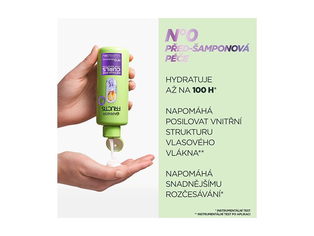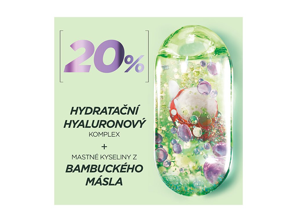 Hydratační předšamponová péče pro suché vlnité vlasy intenzivně hydratuje vlasové vlákno a napomáhá posilovat jeho vnitřní strukturu. Složení je obohaceno o 20% hydratační hyaluronový komplex a mastné kyseliny z bambuckého másla, které hydratují vlasy až na 100 hodin.