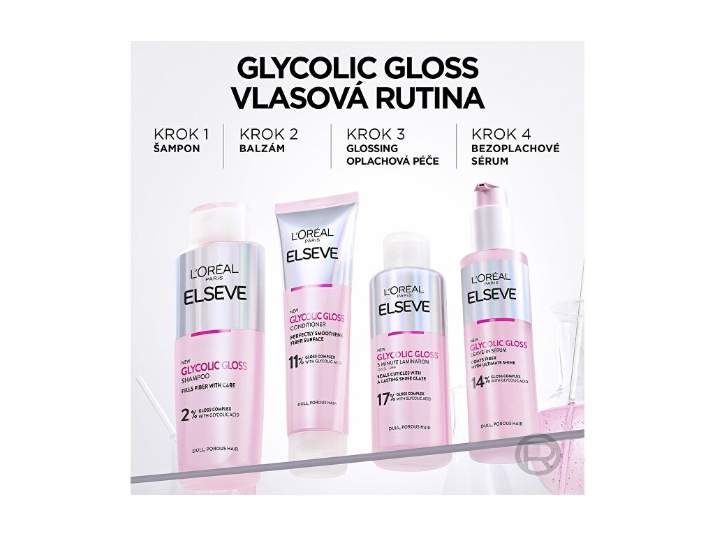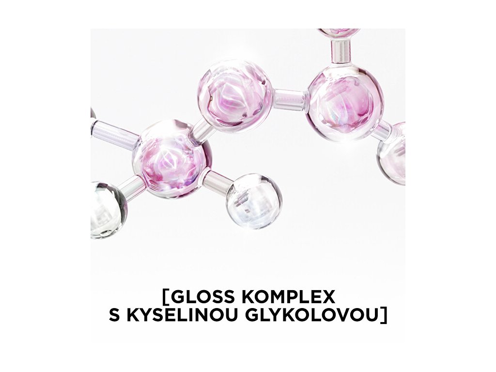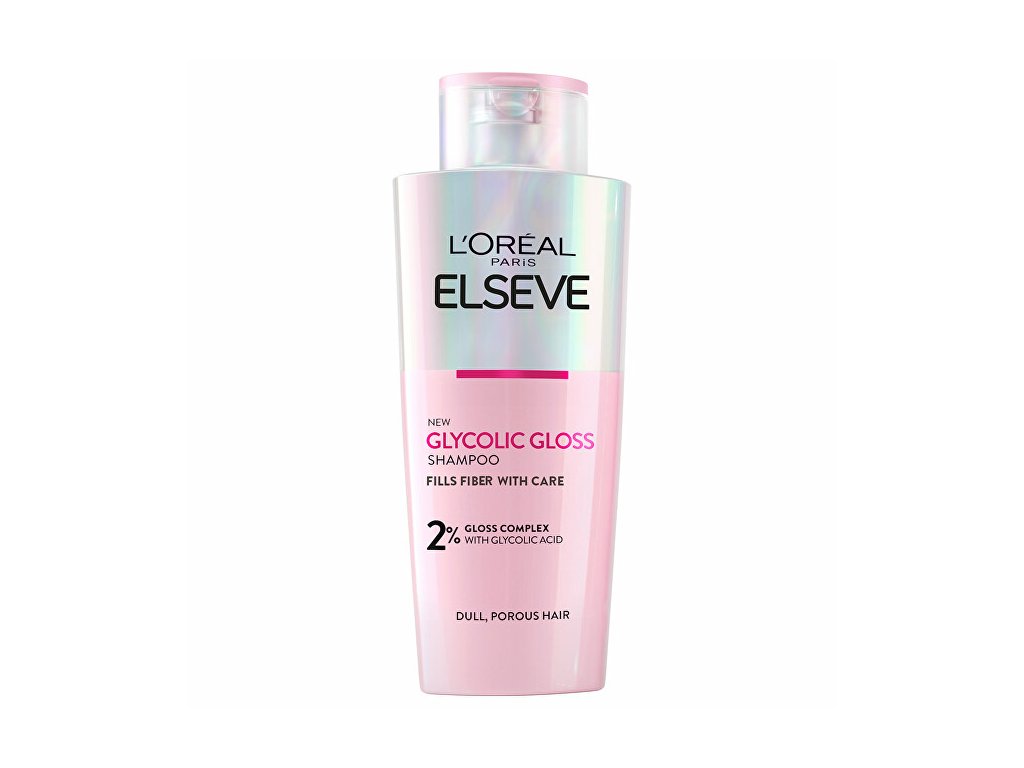 První šampon od Elseve s obsahem 2 % Gloss komplexu a kyseliny glykolové, který obnovuje vlasové vlákno zevnitř a viditelně zlepšuje jeho kvalitu. Pomáhá uzavírat vlasové kutikuly, čímž zajišťuje hladký povrch a zářivý lesk vlasů. Ideální pro matné, mdlé nebo chemicky ošetřené vlasy.