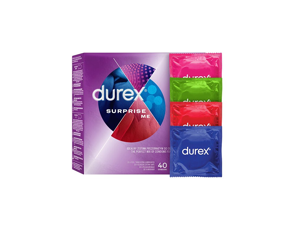 Chcete změnu? Nebo máte chuť na malé překvapení? Překvapte sebe a svého partnera či partnery kondomy Durex Surprise Me. Prozkoumejte čtyři druhy kondomů z řady Durex a užijte si hodiny zábavy a objevování.