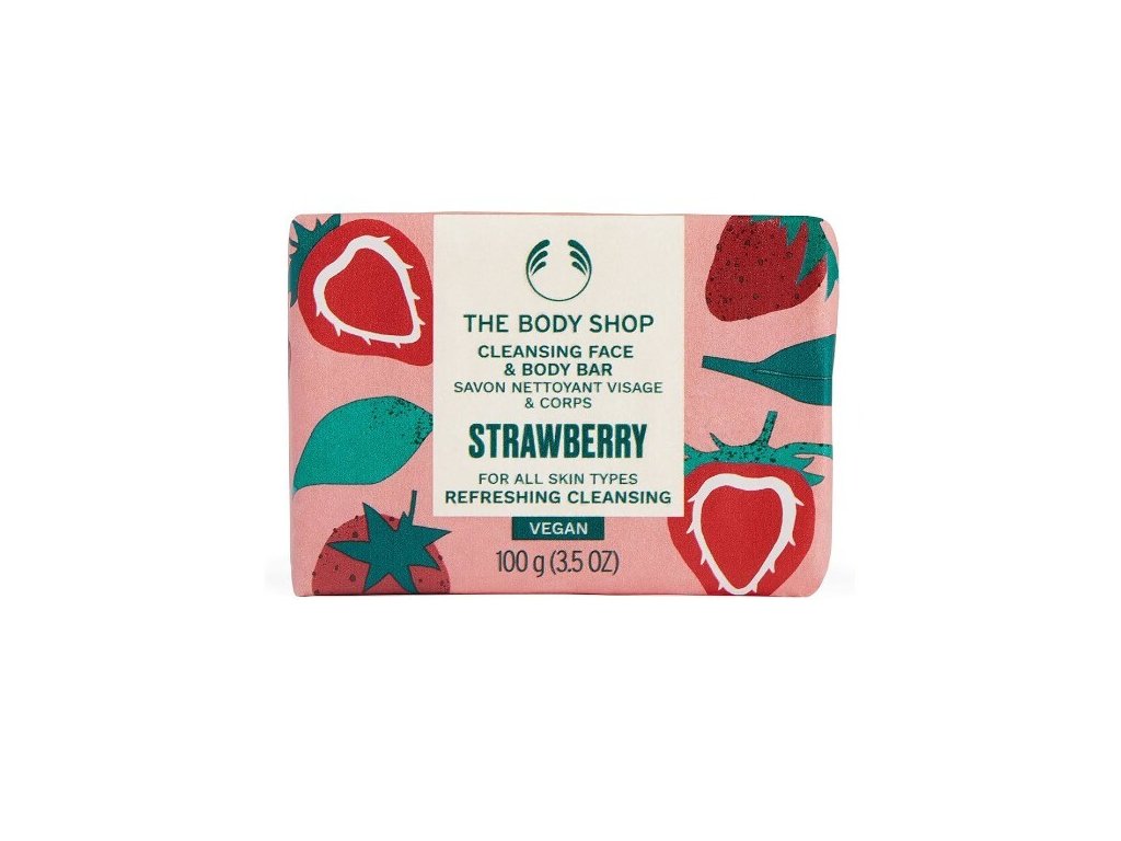 The Body Shop Tuhé mýdlo na obličej a tělo Strawberry (Cleansing Face & Body Bar) 100 g