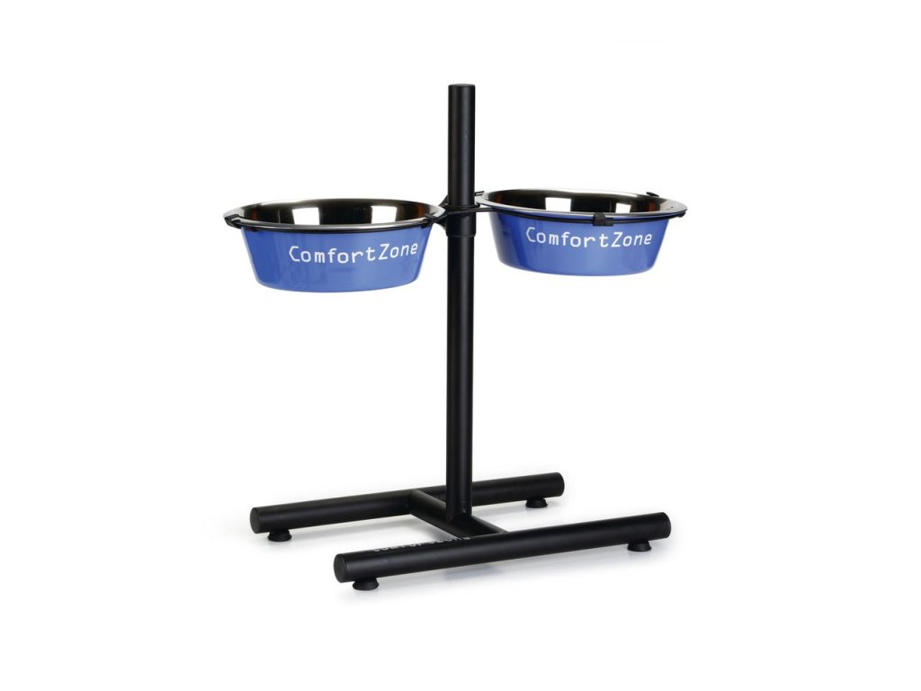 Beeztees Stojan na misky je pěkně vypadající stojan doplněný o dvě misky pro Vašeho psa. Tento stojan je výškově nastavitelný, takže si můžete vybrat tu správnou pozici pro Vašeho nejlepšího kamaráda. Díky kulatému profilu vypadá stojan H mírně odlišně od běžných stojanů. Na spodní straně jsou protiskluzové krytky, které zajišťují stabilitu a také chrání podlahu před poškrábáním. Na miskách je nápis Comfort Zone. Vyrobeno z kovu. Protiskluzový. Průměr misky: 25 cm. Objem misky 2350 ml.