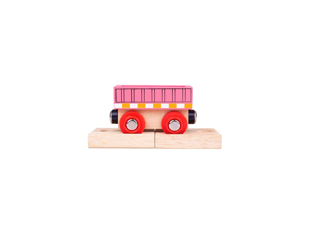 Převezte zboží do cíle! Tento růžový vagón obsahuje magnetické spojky, díky kterým se může připojit k jiným vagónům nebo lokomotivám z řady Bigjigs Rail. V balení také 2 kusy dřevěných kolejí. Hlavní vlastnosti: vláčkodráhy a jejich příslušenství značky Bigjigs Rail je možno kombinovat se všemi dalšími dřevěnými vláčkodráhami na trhuvyrobeno z kvalitních a zodpovědně získaných přírodních materiálůodpovídá současným evropským bezpečnostním normámpodporuje představivost, obratnost a koordinaciDoplňkové parametry