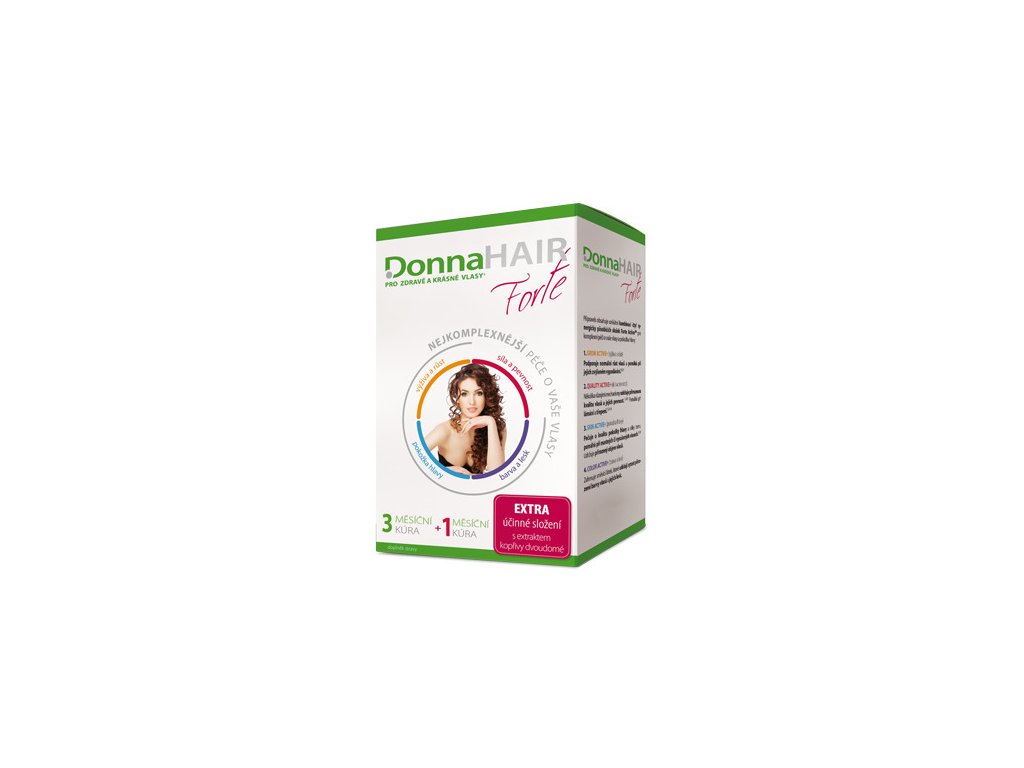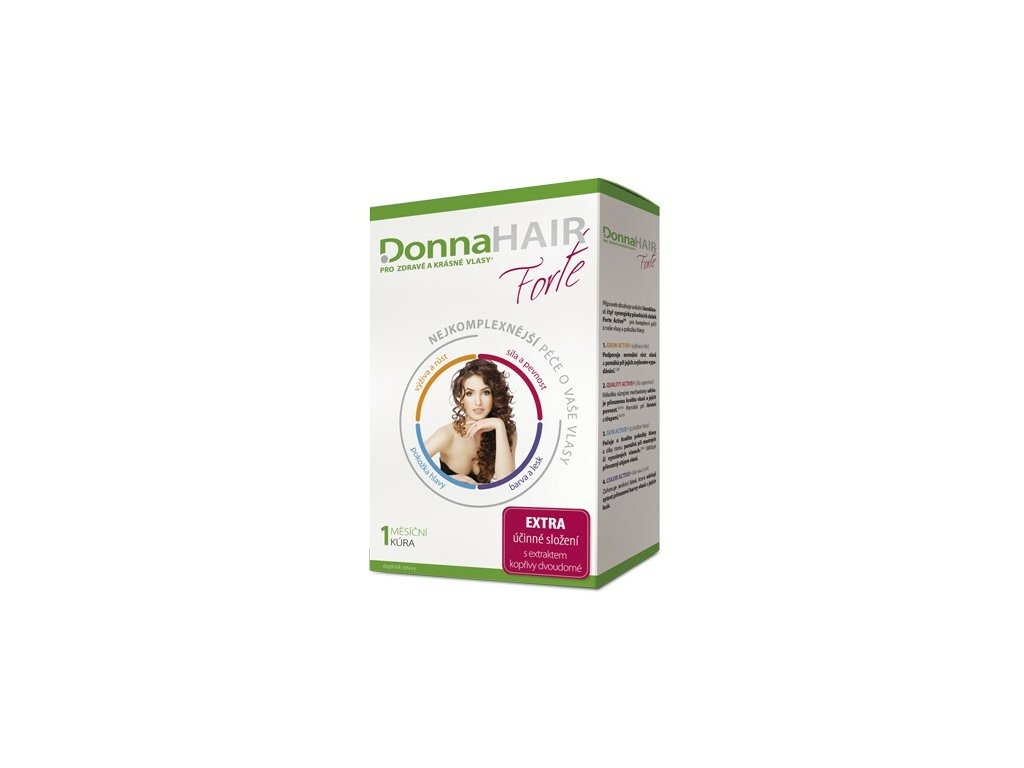 Nové účinnější složení pro přirozenou kvalitu vlasů a pomoc při jejich zvýšeném vypadávání. Obsahuje unikátní kombinaci aminokyselin a extraktu z kopřivy. Speciálně přizpůsobeno také pro potřeby těhotných a kojících žen. Jediná tobolka doplňku stravy DonnaHAIR® FORTE obsahuje zvýšenou dávku aminokyselin, pivovarských kvasnic a biotinu, který podporuje zdravý růst vlasů a pomáhá při lámání a třepení. Navíc je obohacen o extrakt kopřivy dvoudomé, která podporuje tvorbu keratinu, základního stavebního prvku vlasů. Díky tomu je dosaženo: - rychlejšího nástupu účinku, - působení přípravku je dlouhodobější, - výsledná kvalita vlasů je viditelně lepší. Nejprodávanější výživa specializovaná na vlasy v ČR 2011-2017.