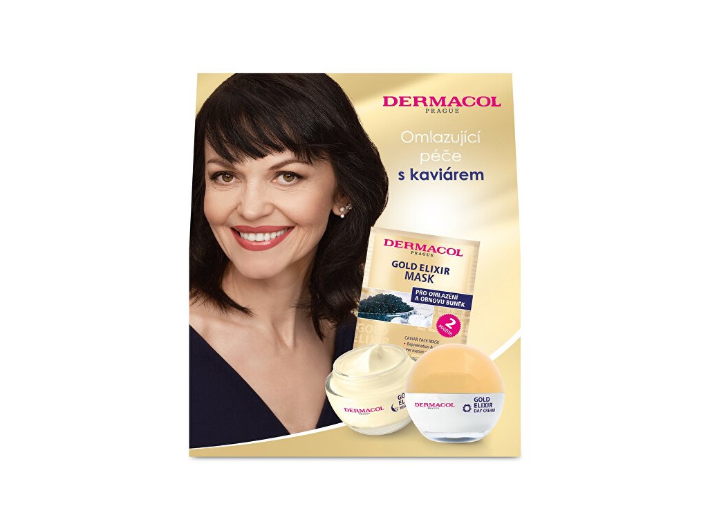 Sada obsahuje: Omlazující kaviárový denní krém SPF 10 (Gold Elixir Day Cream) 50 ml Omlazující kaviárový noční krém (Gold Elixir Night Cream) 50 ml
