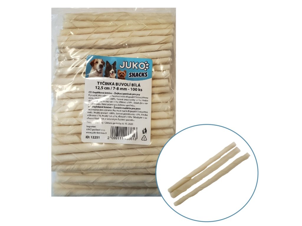 Tyčinka buvolí bílá JUKO Snacks12,5 cm, 7 - 8 mm (100 ks)