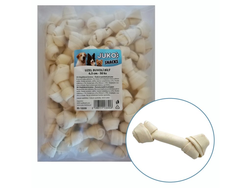 Uzel buvolí bílý JUKO Snacks 6,5 cm (50 ks)